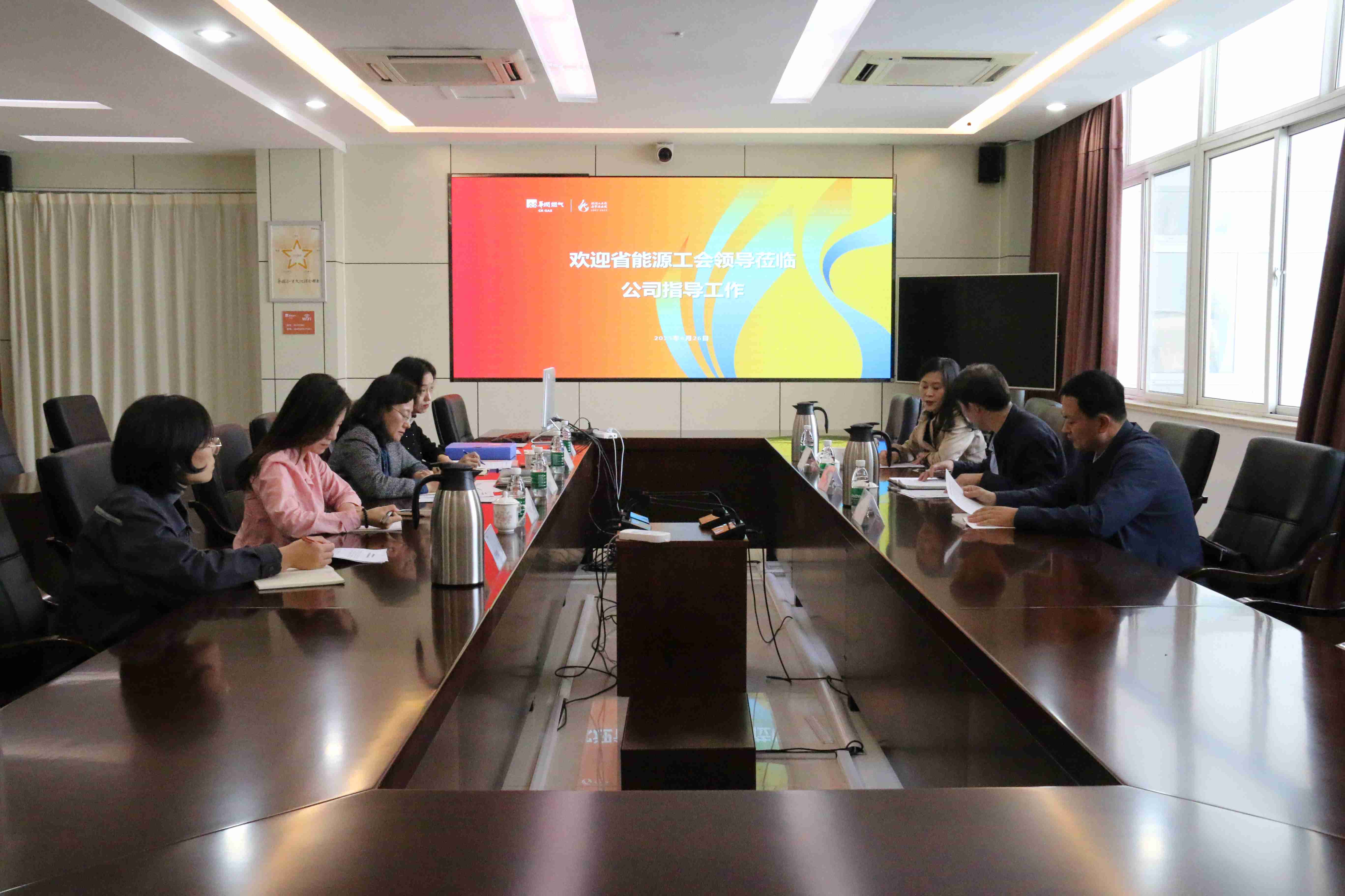 4月26日,山東省能源工會負責人郝文令、副主席王傳奎一行到市能源集團調研指導集體協商工作和創新工作室創建情況,集團公司黨委委員、副總經理、工會主席馬靜等同志陪同。座談會上,馬靜同志介紹了集團公司推進集體協商工作情況和集體合同履行情況,淄博華潤燃氣公司