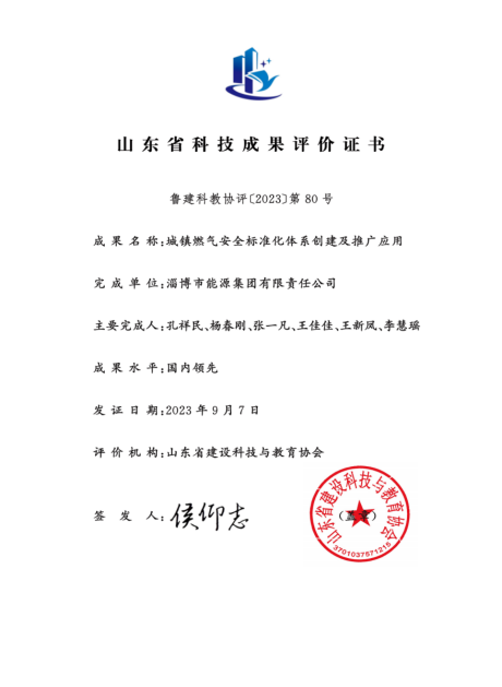 淄博市能源集團“城鎮燃氣安全標準化體系創建及推廣應用”項目在山東省住房和城鄉建設廳主辦的全省建設科技創新成果競賽上,通過終評答辯,榮獲二等獎。今年9月份,該項目曾在山東省建設科技與教育協會組織的山東省科技成果評價中,被專家委員會一致認為:“此項目成果