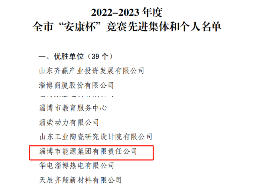 近日,市能源集團榮獲2022-2023年度全市“安康杯“競賽先進集體榮譽稱號。接下來,市能源集團將珍惜榮譽、再接再厲,以“安康杯”“查保促”等活動為載體,持續深入開展群眾性安全生產活動,樹牢安全生產意識,推動落實安全生產主體責任,為促進集團公司高質量