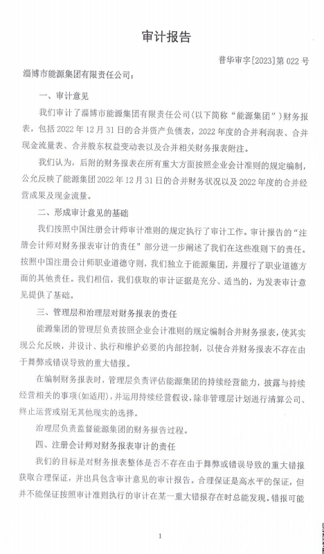 淄博市能源集團有限責任公司 2023年中期財務等重大信息公開報告